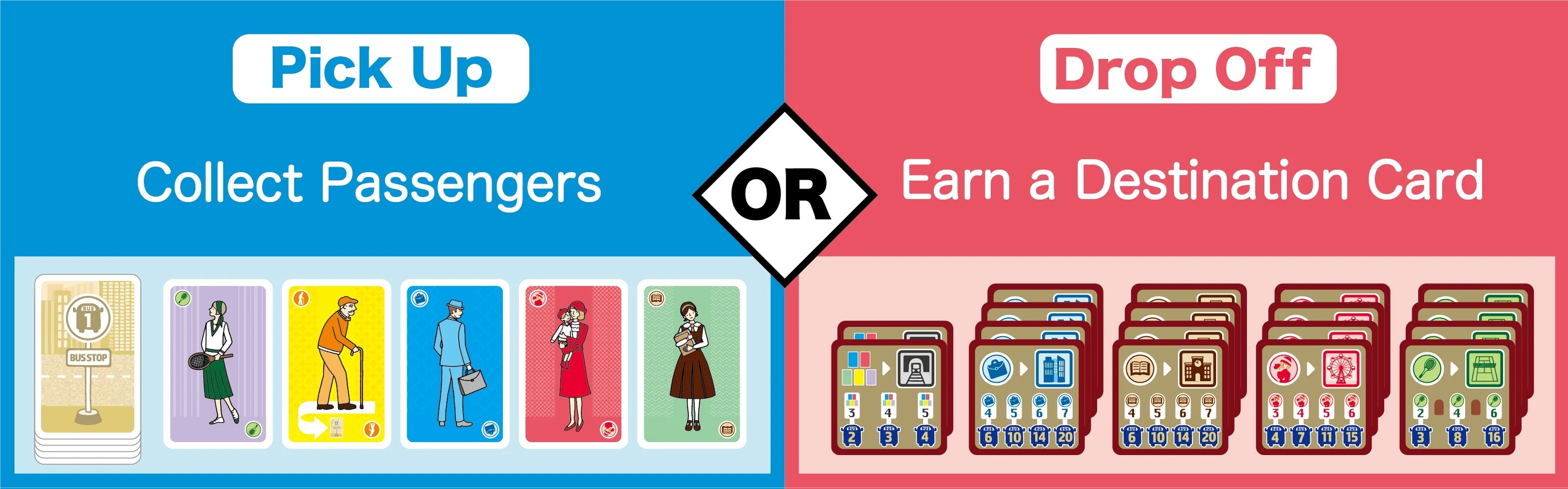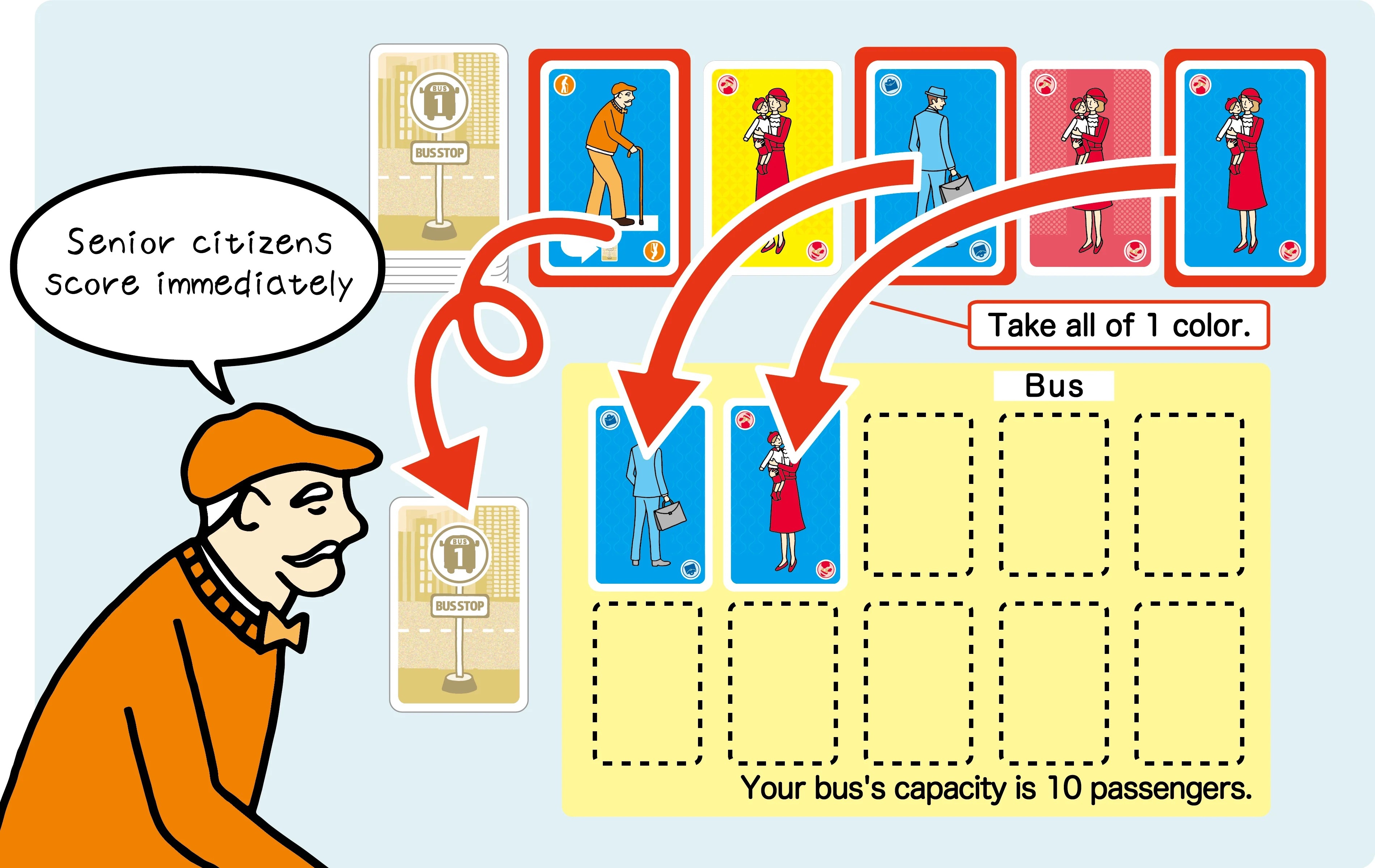 BUS & STOP 是一款紙牌遊戲,您將扮演公車司機,努力將乘客帶到他們想要的目的地,同時避免過度擁擠。 簡單的規則,您可以在每個回合中「拿取」(收集卡片)或「放下」(得分),並加入互動策略,打造輕鬆、愉快的體驗。